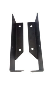 Estribo variável. Peças já em acabamento pintado Epoxi preto. Um dos mais importantes e versáteis conectores metálicos para estruturas, os estribos de sustentação suportam caibros, colunas, tesouras ou qualquer elemento que necessite de sustentação sem a necessidade de uma coluna. Indicado para madeiras desbitoladas, como madeiras de demolição ou caibros rústicos.